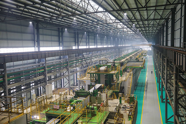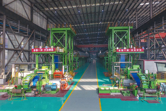 公司擁有1420酸洗冷軋聯(lián)合機(jī)組(PL-TCM)一套,機(jī)械由中國一重及中冶南方共同設(shè)計制造,電氣采用上海寶信軟件自動化控制系統(tǒng),機(jī)組設(shè)備配置合理,整體裝備達(dá)到國內(nèi)一流水平。機(jī)械設(shè)備涵蓋激光焊接設(shè)備、噴射紊流式酸洗設(shè)備、高精度雙塔式切邊設(shè)備(SMS)、五機(jī)架竄輥式UCM連軋機(jī)、新型回轉(zhuǎn)式雙卷筒卷取機(jī),軋機(jī)電氣采用秒流量控制系統(tǒng)。